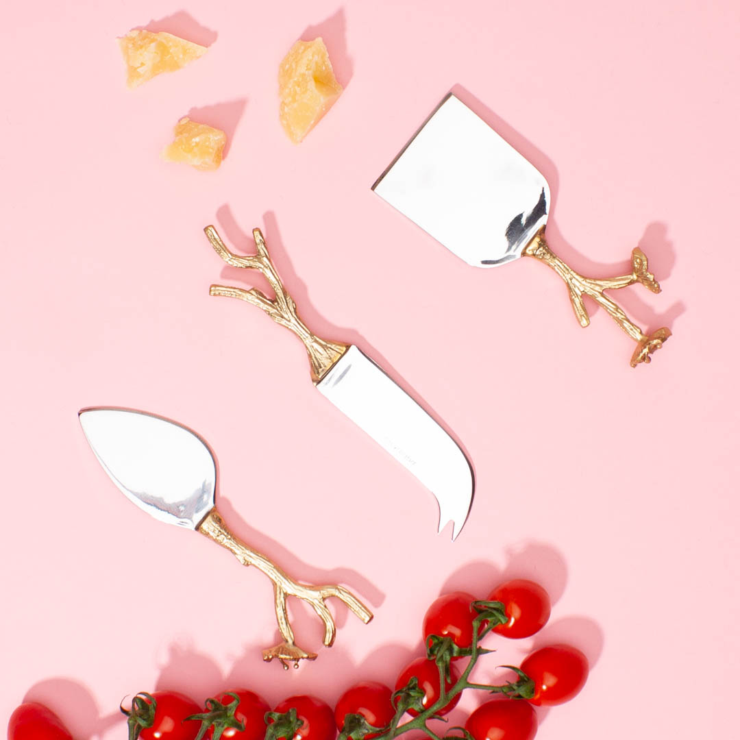 Florales Käsemesser-Set aus Messing, 3-teilig