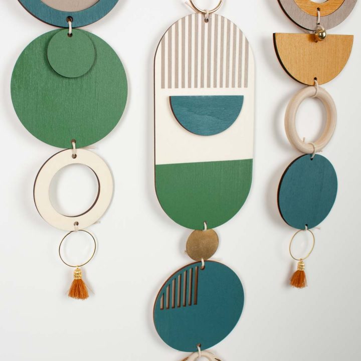 In Tims Atelier in Bletchley, etwa 85 km nordwestlich von London, wird nachhaltiges Sperrholz präzise per Laser zugeschnitten und anschliessend von Tim sorgfältig von Hand geschliffen, um eine glatte Oberfläche zu erhalten. Mit leuchtenden Acrylfarben haucht Tim jedem Teil seinen individuellen, farbenfrohen Charakter ein. Zum Abschluss werden die einzelnen Elemente mit gewachster Schnur zu einem visuell beeindruckenden, geometrischen Kunstwerk zusammengesetzt, das jeden Raum zum Hingucker macht.